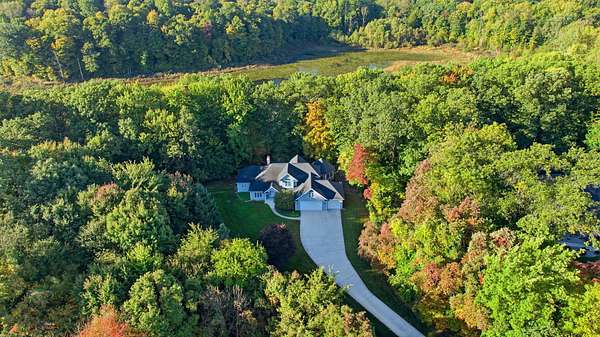 Surrounded by almost 6 acres of scenic nature views you will find this hidden away estate. Upon entering you will be welcomed by a spacious open foyer and three amazing levels of living space. Custom windows throughout fill the home with natural light, creating a bright and airy living space. The main floor has it all - a large primary suite, convenient laundry, a fireplace warmed living room and priceless views from your favorite chair. Upper level offers two additional bedrooms with large walk-in closets and bonus room above the garage. Heading into the basement it provides additional living area with a wood burning stove, kitchenette and full bath along with the same stunning views from indoors or from your walk out patio area. Storage is not issue with the walk-out double door storage/workshop area, plus a large utility room. Relax on the back deck in the screened in octagonal sitting area overlooking the pond which is home to many different wildlife species. A three-car garage that fits all your vehicles and more. This home has been refreshed and carefully prepared for a seamless move in with new carpet just installed this week throughout the main and upper floors. Check out the newer updates which include the roof, furnace, full house generator, driveway, and water treatment system. This property has so much more to offer than just a home; it's a whole new way of living. You need to see for yourself!