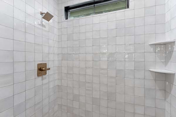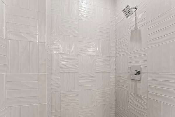 The upper level offers a private deck overlooking the pool along with four additional bedrooms, providing ample accommodations for family or guests.