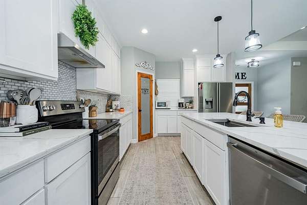 - Decorative Lighting, Eat-In Kitchen, Kitchen Island, Open Floorplan, Pantry, Walk-In Closet(s)