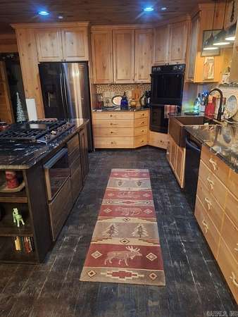 Country living by the lake. This Custom built 1,600 sq ft, 3-bedroom, 2 bath home on 20 unrestricted acres that borders Corps land. The whole house is Western Red Wood siding and 26-gauge crinkle finish roof. Enjoy your coffee or sunset views with wraparound porch that encircles the whole house. The living room has vaulted ceilings with a cozy wood burning double sided fireplace between the living room and kitchen. The kitchen includes custom cabinets, exotic granite countertops, and an adjoining dining/breakfast area. Large master suite with full bath and double entry shower. Loft area with bunk beds. Outside porch is stamped concrete floors and inside are stained/stamped concrete floors. There is also a 30x30 foam insulated shop with 10x30 lean-to, a 10x20 storage building, horse stalls/boat storage, and tack room. Shop has concrete floor, lots of plug-ins and 220-amp serv. Some house furnishing are optional.