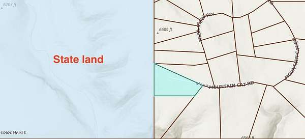 From I-40 head north toward Grand Canyon, on HWY 64, Turn right on Howard Mesa Loop, at the T Turn LEFT on Howard mesa loop. follow the road to the right, at the Y keep left onto Mesa View Rd, the road should continue to mountain cat, Mountain cat dead ends into the property. Sign located on the property.