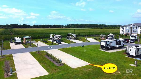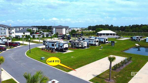 NEW PRICE! Lot 113 for sale in Grand Riviera RV Resort, Foley Al The location of this lot inside this gated park says it all! It's rare one of these highly sought after corner lots become available. This lot rest against the water's edge and a spacious green common area giving it a beautiful view and appealing setting. The resort is just 10 miles from the white sands of Gulf Shores & Orange Beach Al,Enjoy the heart of Foley's most active area! Resort highlights:o Prime Location: Enjoy easy access to OWA, Tanger Mall, Creekside Mini-Golf, and more, all within walking and biking distance.o Community Clubhouse: Large pavilion with pool, lake pier, fully equipped kitchen, picnic tables, 2 large screen TVs, and bathrooms with showers.o Park Amenities: 2 additional bath houses with pools, soccer field, dog park, playground, 3 pickleball courts. Investment Made Easy:o Rent your lot when you're away or set up an RV for Airbnbo Rental assistance program available (optional).o Increase the value by adding a gazebo or pavilion and a storage building to your lotAffordable HOA Dues - $259/mo.Includes water, sewer, landscaping, cable, WIFI, and all park amenities! Buyer to verify all information during due diligence.
