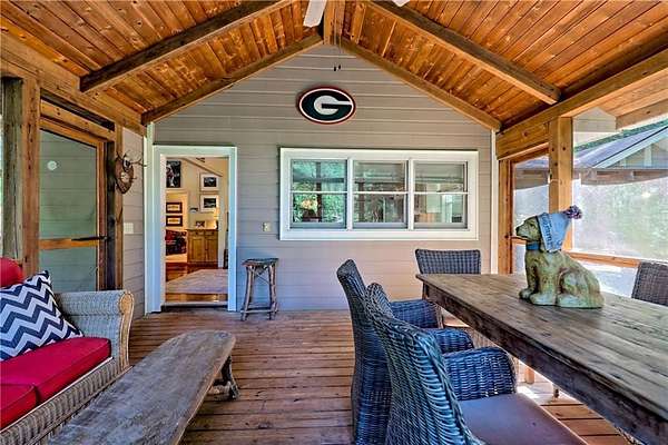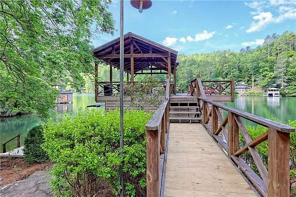 Recreate and Relax at this welcoming home, close to the water located in the tranquil "Narrows" of Lake Rabun . This well maintained 5 bedroom , 4 bath home is offered FURNISHED and with TWO BOATS included (Pontoon Boat and Ski Boat). Just pack your bags and you are ready to enjoy this private 2+ acre lot with long shoreline. Enter with groceries from the level, 2 car- carport into the main level . The cozy living room with stone fireplace that invites warm gatherings that can expand on to the full length porch with its spectacular lake view. An oversized screened porch is conveniently located off the kitchen and is the favorite dining area for large groups. The dine-in kitchen has two large walk-in pantries and opens to the living area. A tv room leads to one of the two main level bedrooms and baths. A second bedroom and bath complete the main level. Retreat upstairs to the gracious Primary bedroom, sitting area and bath with an impressive lake view. There are two additional bedrooms on this level and one full bathroom. Enjoy outdoor cookouts and gardening at the backyard which has a covered , stone porch and is partially fenced.Relax and Entertain at the two stall Boathouse which has an open deck for the sun worshipers and a Pavillion top for the shade seekers. The oversized party dock serves dual purposes for lounging and boat docking. The expansive dock along the shore has recently been replaced . Deep water location for boating, a full service marina,, 2 restaurants, a charming top rated hotel and multiple special events venues await on Lake Rabun. Just 2 hours drive from Atlanta, 20 minutes to downtown Clayton or 10 minutes to the historic village of Lakemont.