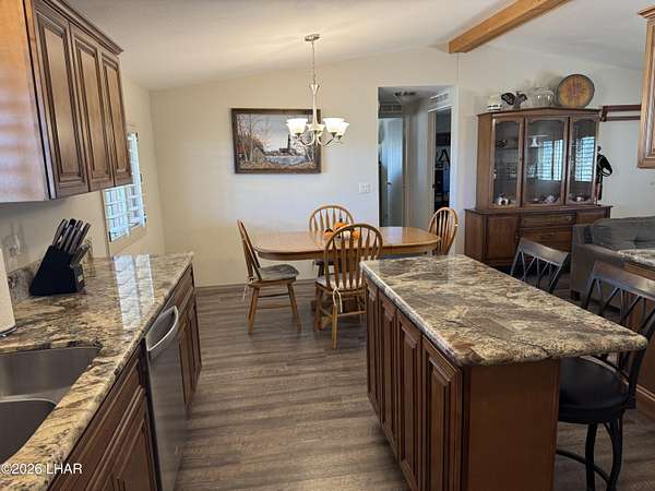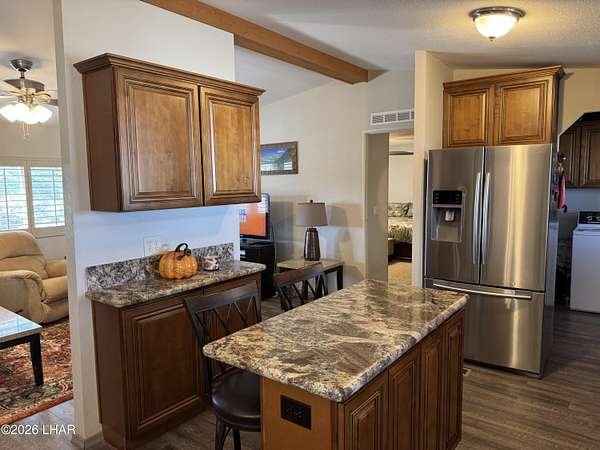 - Breakfast Bar, Casual Dining, Ceiling Fan(s), Counters-Granite/Stone, Kitchen Island, Open Floorplan, Rear Kitchen