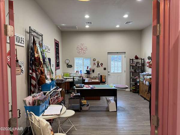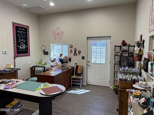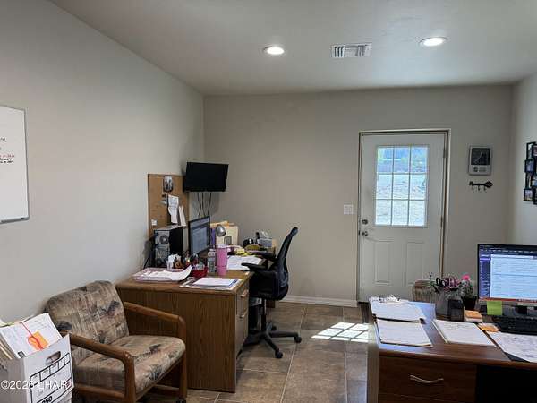 Est $3,933/moDream Garage/Shop, including 2 Business Offices, Bath, AC Cooled Mini Split !! Separate entrances, 2 separate RV Garage Door Entrances. Included with this, 3 bed, 2 ba newly remodeled Modular Home With Plantation Shutters, Open Beamed Ceilings, a rear kitchen with Granite Counters, Kitchen Island/Bar. The property is fully fenced, and is zoned for horses !! Beautiful landscaping too !! Paved Road.