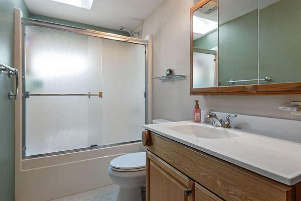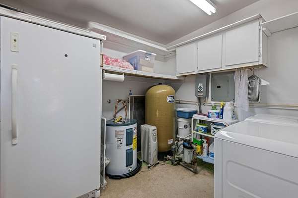 - Ceiling Fan(s), Fiberglass Stall Shower, Fireplace, Laminate Counters, Open Floorplan, Pantry, Primary Downstairs, Shower/Tub Combo