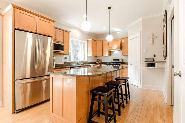 If you've been looking for a bit more breathing room without losing the city's convenience, this 12.5-acre executive home hits the mark. Set in the TK school district, it's a private wooded retreat bordering state land, yet it's only 25-30 minutes from Grand Rapids. The interior is solid and intentional. The living room centers on a wood-burning fireplace made from hand-picked local field stones. You'll find granite surfaces, stainless appliances, and hardwoods throughout much of the main level. The primary suite is a true escape, featuring dedicated sound insulation and an large bathtub. The finished basement adds a family room, den, and a bonus room with its own 4' concrete staircase leading directly to the garage--a subtle but incredibly practical feature for moving gear. Outside, the 'Adventure Trail' winds through the woods for your daily dose of nature. It's a high-quality, quiet home that simply speaks for itself.