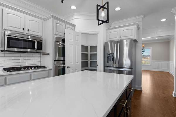 - Cooktop, Disposal, Double Oven, Microwave, Refrigerator, Stainless Steel Appliance(s)