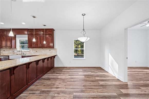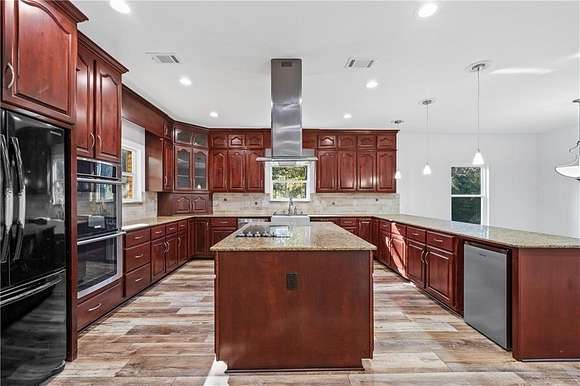 BOM through no fault of Seller This beautiful brick & vinyl construction home features five bedrooms, four bathrooms and approximately 4,910 SF of living area, 6,212 SF under-roof with its double garage, all situated on 12.89+/- Acres with your very own private pond! Make this gorgeous remodeled home your own private retreat. Enjoy this spacious kitchen with tons of cabinets for storage, granite countertops, an island and a separate breakfast bar, breakfast room and formal dining room. You'll enjoy exceptional new flooring in most of the house, new paint throughout, and a new water heater. The over-sized master bedroom features a huge bath suite with separate vanities, closets, shower and an oversized garden tub. You won't believe the amount of space between the bonus room/media room, office area and butler's pantry! The great outdoors features a gazebo-type gathering spot, large front and back covered porches, an outside storage and huge pole barn or extra storage space. This one will not disappoint - make your appointment today!