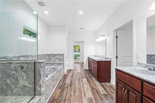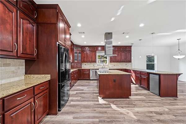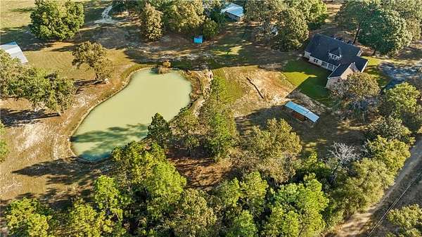 This beautiful brick & vinyl construction home features five bedrooms, four bathrooms and approximately 4,910 SF of living area, 6,212 SF under-roof with its double garage, all situated on 12.89+/- Acres with your very own private pond! Make this gorgeous remodeled home your own private retreat. Enjoy this spacious kitchen with tons of cabinets for storage, granite countertops, an island and a separate breakfast bar, breakfast room and formal dining room. You'll enjoy exceptional new flooring in most of the house, new paint throughout, and a new water heater. The over-sized master bedroom features a huge bath suite with separate vanities, closets, shower and an oversized garden tub. You won't believe the amount of space between the bonus room/media room, office area and butler's pantry! The great outdoors features a gazebo-type gathering spot, large front and back covered porches, an outside storage and huge pole barn or extra storage space. This one will not disappoint - make your appointment today!