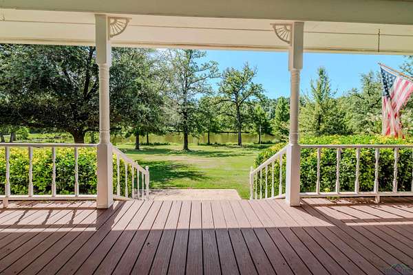 This wonderful 3/2.5/2 home has 2477 sf, sits on +/- 51.28 acres, has a stocked pond and is located in Harmony ISD. The home features a beautifully updated kitchen, large living room, a huge primary bedroom, BEAUTIFUL views and complete privacy. The living room features a wood-burning fireplace, plenty of space for family/friends and views of the lake. In the kitchen, you will find granite counter-tops, custom cabinets, a pantry and ample space for all your cooking needs. The spacious primary bedroom features a large en suite with a walk-in closet, soaker tub, walk-in shower and double vanities. Step outside onto the covered porch and enjoy the majestic views of the lake or entertain on the covered patio which is perfect for all your BBQs. Other features include a cleared area for a shooting range/hunting area, an equipment shed and storage building. The majority of the property is a pine plantation that is about 10 yrs old and offers future income. The first cut is coming up soon.