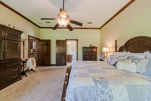 This wonderful 3/2.5/2 home has 2477 sf, sits on +/- 51.28 acres, has a stocked pond and is located in Harmony ISD. The home features a beautifully updated kitchen, large living room, a huge primary bedroom, BEAUTIFUL views and complete privacy. The living room features a wood-burning fireplace, plenty of space for family/friends and views of the lake. In the kitchen, you will find granite counter-tops, custom cabinets, a pantry and ample space for all your cooking needs. The spacious primary bedroom features a large en suite with a walk-in closet, soaker tub, walk-in shower and double vanities. Step outside onto the covered porch and enjoy the majestic views of the lake or entertain on the covered patio which is perfect for all your BBQs. Other features include a cleared area for a shooting range/hunting area, an equipment shed and storage building. The majority of the property is a pine plantation that is about 10 yrs old and offers future income. The first cut is coming up soon.