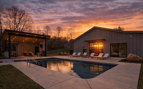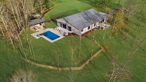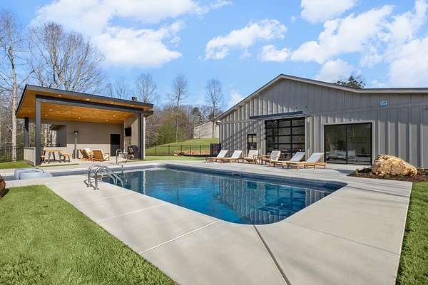 Some properties absolutely take your breath away. This 32-acre estate in the foothills of the North Georgia Mountains is one of them. This pristine farm unfolds like a private park-more reminiscent of a manicured golf course than a traditional farm. Gently rolling pastures, a stocked fishing pond, and over 1,700 feet of flowing creek create an unforgettable landscape. Scattered throughout the property, mature fruit trees, open pasture, and pockets of forest add layers of charm, privacy, and quiet abundance. A serene drive leads you to the heart of the property, where a newly built modern home blends clean architectural lines with warm, natural surroundings. Designed with both intention and ease, the home offers a refined yet highly livable aesthetic-where indoor and outdoor spaces connect effortlessly. A thoughtfully designed split-bedroom layout provides flexibility for multi-generational living or hosting family and friends with ease. Expansive windows flood the home with natural light, bringing the beauty of the outdoors in throughout the day. The kitchen is appointed with high-end, top-tier appliances, offering both function and elevated design. The outdoor living experience is equally compelling, featuring a stunning saltwater pool and a beautifully designed pool house complete with a wood-burning outdoor fireplace-perfect for entertaining or quiet evenings under the North Georgia sky. A separate barn, complete with water and electricity, adds both function and versatility-ideal for equestrian use, hobbies, or future expansion. Private yet conveniently located just one hour from Atlanta and only 10 minutes from Jasper, this is a rare opportunity to own a true legacy property-where land, water, and architecture come together in perfect balance. *This home was completely rebuilt in 2024. Only the best building materials were used in keeping with a top tier luxury design. Home has Nichiha siding - not metal.
