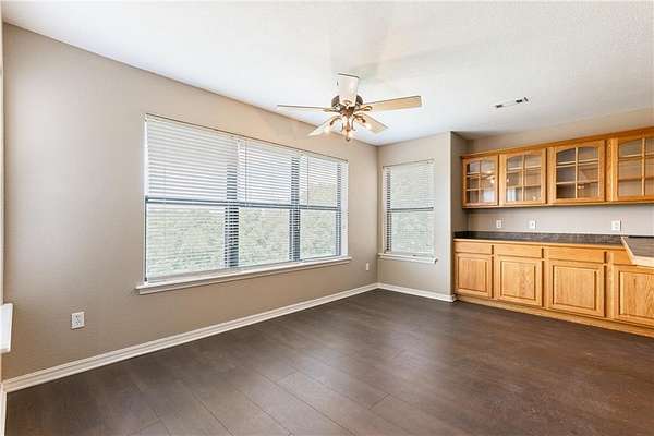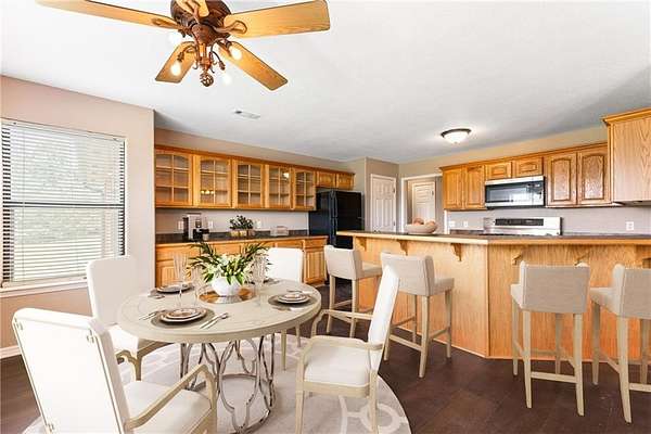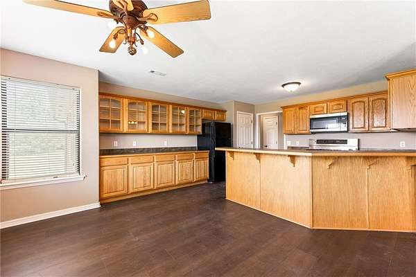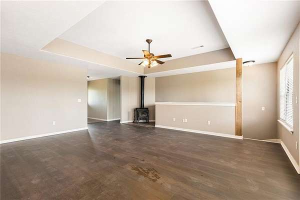 - Attic Storage, Blinds, Built-Ins, Ceiling Fans, Eat-in-Kitchen, Pantry, Smoke Detector, Walk-In Closets, Woodstove