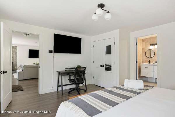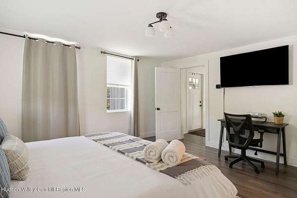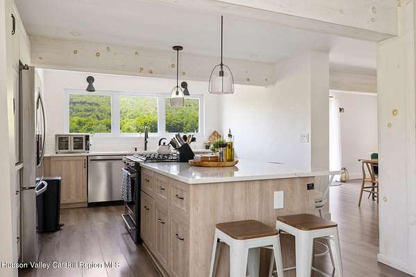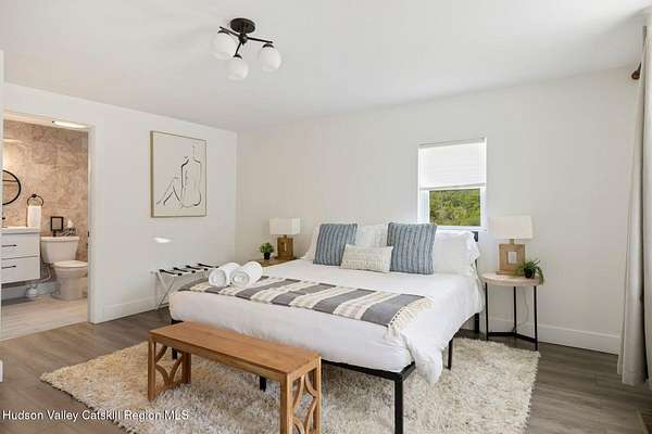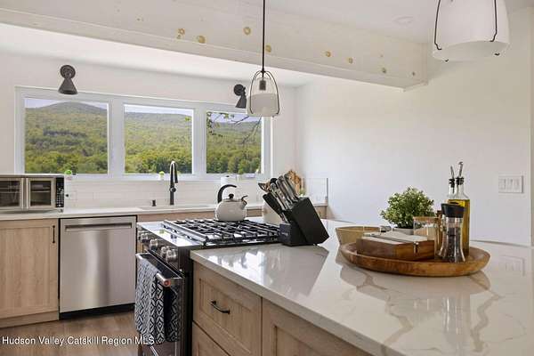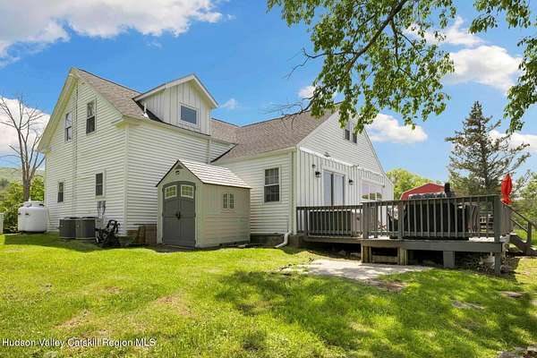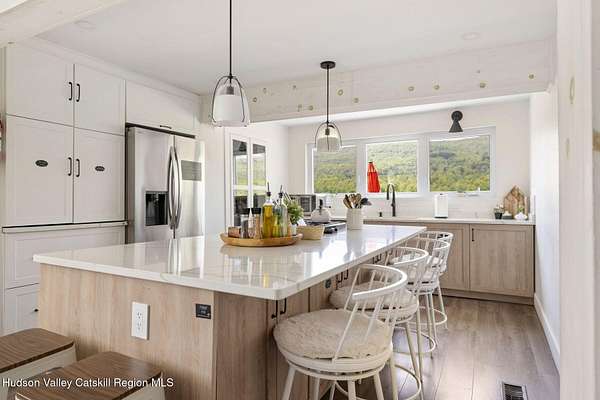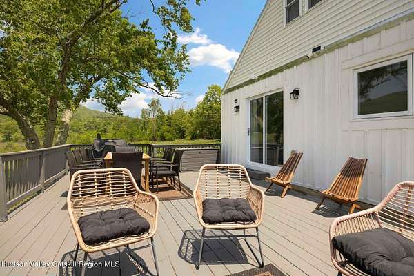 Bright Sparrow Farmhouse - Modern Farmhouse on 8+ Acres with Private Pond, Mountain Views & Proven Rental Income | Windham, NY Welcome to Bright Sparrow Farmhouse-your dream Catskills retreat where modern farmhouse style meets timeless charm on over 8.22 private acres with a spring-fed pond, unobstructed mountain views, and a turnkey short-term rental setup with proven income. Located just 10 minutes from Windham Mountain Club, 15 from Hunter, and 2.5 hours from NYC, this is the ultimate four-season escape. Originally built in the 1800s and professionally renovated by an interior designer, this light-filled 4-bedroom, 3.5-bath home now showcases original hand-hewn beams, bright modern finishes, and seamless indoor-outdoor flow. Two spacious ensuites-one on each level-offer flexible accommodations for guests or multi-generational living. The gourmet kitchen is as functional as it is breathtaking, with panoramic pond and mountain views, quartz island with seating, granite counters, wine fridge, walk-in pantry, hidden coffee bar, and top-of-the-line stainless appliances. The open-concept living/dining area is anchored by a wood-burning stove and surrounded by picture windows framing nature in every direction. Step onto the expansive freshly painted deck, where you'll find a dining table, BBQ, and lounge area-the perfect place for morning coffee or evening cocktails as the sun sets over your own pond and the rolling Catskill peaks. Upgrades include a new roof, AC, solar panels and backup battery with option for EV charger -ensuring year-round comfort and efficiency. Upstairs laundry is discreetly tucked away for convenience. Available fully furnished, this home is move-in or rental-ready from day one. With its established rental history, high-end styling, and unbeatable location near skiing, lakes, golf, ziplining, hiking, and wineries, this is a rare opportunity to own a slice of the Catskills that offers lifestyle and ROI in one irresistible package. Call schedule your private showing today! Don't wait-homes like this are rare and in demand. A 3D Walkthrough Tour is available in the digital Lookbook or by request from the listing agent.