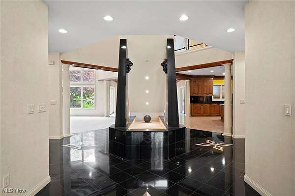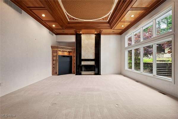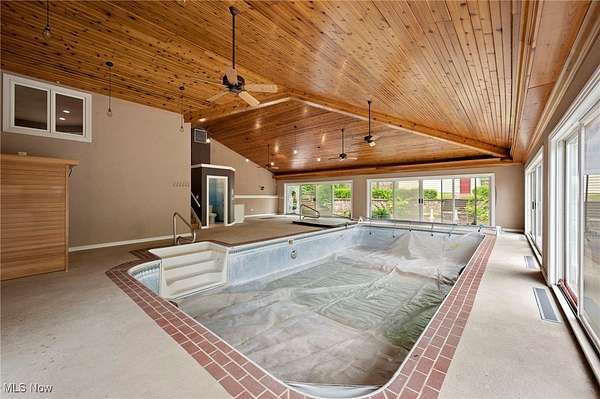 Welcome to 769 Village Trail - an exceptional estate nestled in one of Mayfield's most sought-after neighborhoods. This grand residence offers over 5,000 square feet of thoughtfully designed living space that blends luxury, comfort, and entertainment. Your own private oasis awaits with a fully equipped four-seasons indoor pool, sauna, hot tub, and convenient amenities for year-round enjoyment. For added convenience, the pool area includes a dedicated half bath and a changing room with a full bath just steps away. The lower level features a spacious theater room for immersive movie nights and a mini bar, creating the perfect setup for entertaining family and friends. Main-floor living is a highlight with a generous primary suite, full laundry room, and a flexible bonus space that the previous owner enjoyed as a private massage room - ideal for wellness, an office, or a hobby retreat. Elegant architectural touches such as tray and coffered ceilings complement three fireplaces (two indoors and one outdoors), adding warmth and character throughout the home. Outside, a two-tiered entertainment terrace with a full pavilion kitchen - complete with sink, microwave, dishwasher, mini fridge, fireplace, and convenient half bath - makes hosting effortless. Sports and recreation enthusiasts will appreciate the private half-court basketball area and an outdoor putting green surrounded by tranquil wooded views. Two separate garages - a spacious 2.5-car attached and an additional 2-car detached - offer plenty of parking and storage for all your needs. Classic in design and rich with potential, this home invites your personal touch to transform it into the showplace of your dreams. A little TLC will go a long way in elevating its unique features to their fullest. Schedule your private tour today and imagine the extraordinary lifestyle that awaits you at 769 Village Trail.