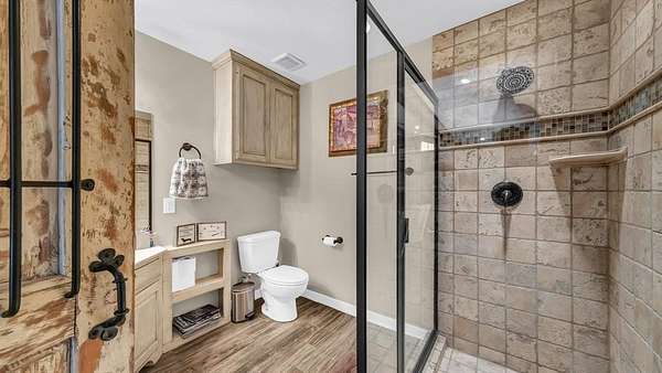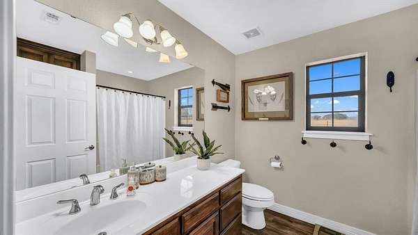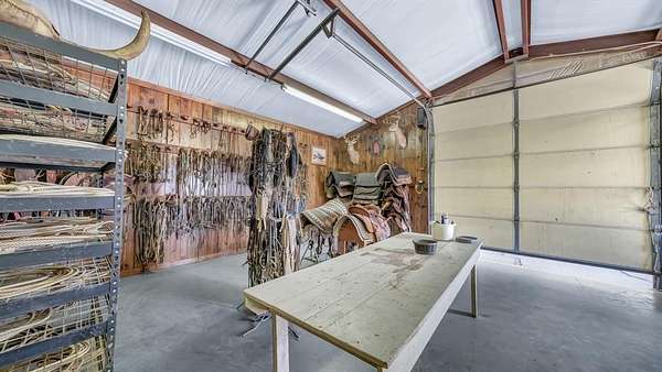 Designed with horse owners in mind, the property includes four cross-fenced pastures, three ponds, three large turnout shelters, and two pipe water lots. The equestrian facilities are anchored by a 150 ft x 300 ft pipe arena with pens, a Priefert solar chute, adjustable head box, and a four horse programmable free flow panel walker. The 25 ft by 30 ft insulated, finished, and heated shop features shed-row style stalls (three total) and one pen, offering both functionality and convenience.