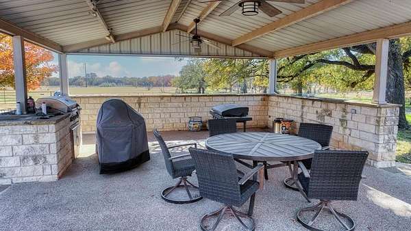- Attached Grill, Built-In Barbecue, Covered Patio/Porch, Fence, Fire Pit, Gas Grill, Rain Gutters, Stable/Barn