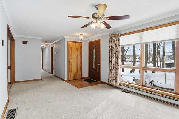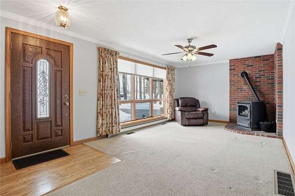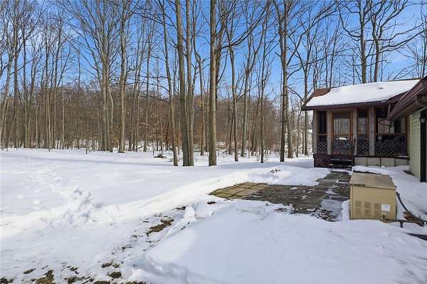 Welcome to this well-maintained 3-bedroom, 1.5-bath ranch nestled on a beautiful 1.6-acre wooded lot, offering privacy and a peaceful, park-like setting. Built in 1985, this home has been thoughtfully cared for and features a flexible floor plan to suit your needs - including a potential third bedroom that could easily function as a spacious family room. The bright and inviting interior includes a cozy pellet stove, an updated full bathroom with a double vanity, granite countertop, and walk-in shower with sliding glass doors. Major mechanical updates provide peace of mind, including a high-efficiency gas furnace with central air, tankless water heater, and a permanent whole-house generator. Enjoy the outdoors from the screened-in porch overlooking the serene backyard, perfect for relaxing or entertaining. Additional highlights include a full basement for storage or future finishing potential, a 2-car attached garage, and a convenient carport. This property offers the perfect combination of comfort, functionality, and natural surroundings - all in a desirable ranch layout. Open House Sunday, February 22 from 11:00 AM - 1:00 PM. Delayed negotiations Tuesday, February 24 at 4:00 PM. Don't miss this opportunity!