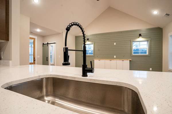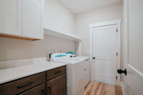 The heart of the home is the beautifully appointed kitchen, complete with quartz countertops, stainless steel appliances, and a clean, modern farmhouse aesthetic. A washer and dryer are included, making this home truly move-in ready.