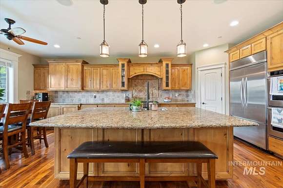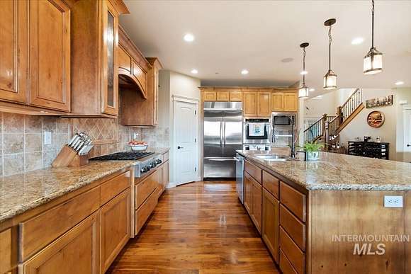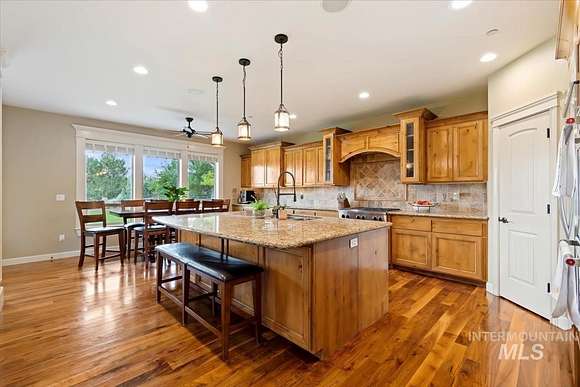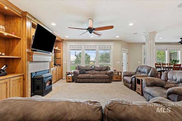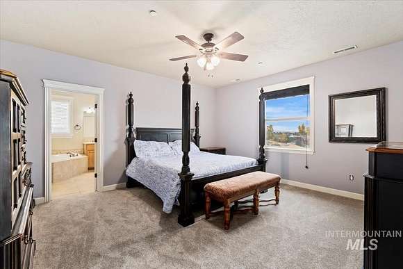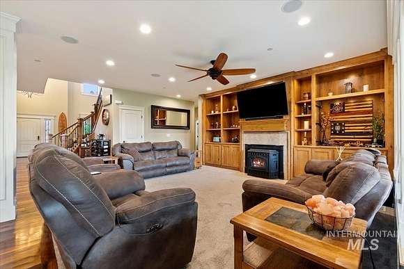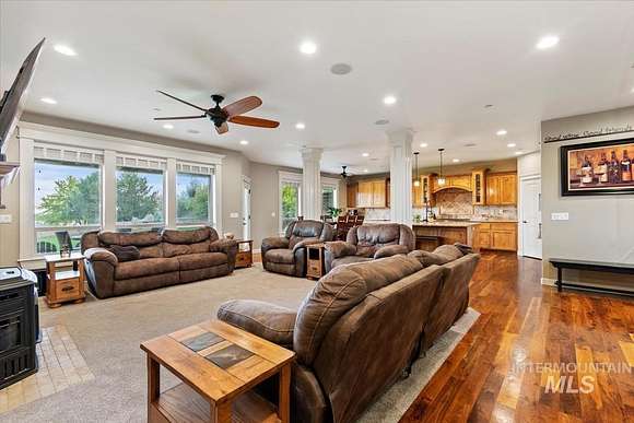 5000 sf shop...see more. Live on top of the world in your new dream home. Look over all of Star and Middleton while taking in the beauty of the Owyhee Mountains. Great property layout with multiple areas that could be split up and built on to create income or build the ultimate family compound. No HOA on this paradise, so make it your own. Home boasts a large theater room, great open living area downstairs, a steam shower and dual shower heads in the master. 4 different gated off areas offer lots of options. Many updates in the last couple of years, including new roof, furnace, double ovens, dishwasher, microwave, and well pump/electronics, along with brand new carpet throughout. Built in chicken coop already set up for lights and heated floor. And if all that isn't enough, there's a 5000 square foot (50x100) shop ready to fit your RV, boat, equipment, or anything else you have. Plus large overhangs on each side for animals. Shop has 200 amp service and is pre-plumbed to add a bathroom.