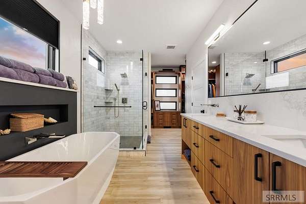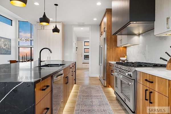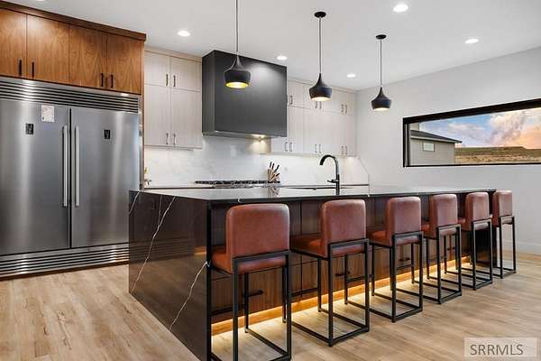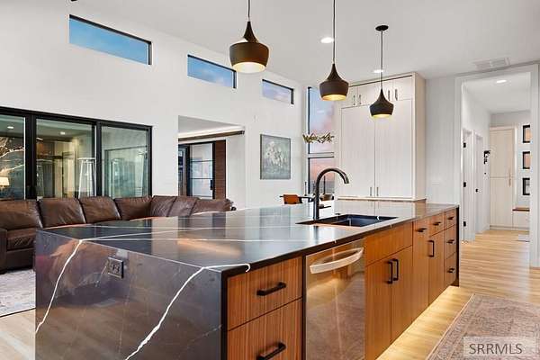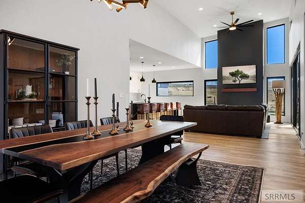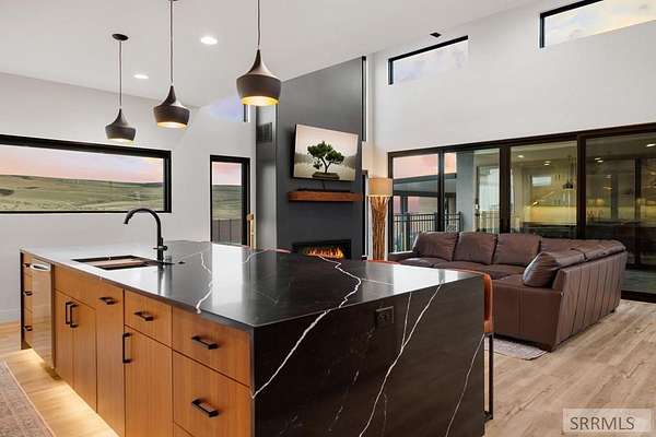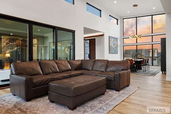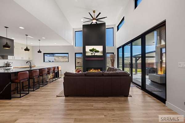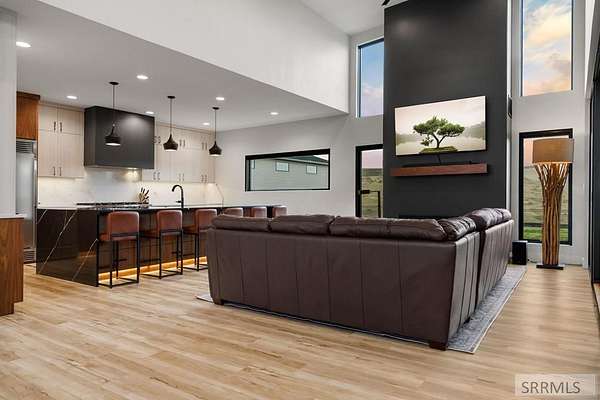 4 bedroom Idaho Falls home that sits at the top, with city views out front and mountain views out back! Inside, the layout is modern and dialed in, w/ luxury finishes. Large Pella windows pull in views from nearly every room. Throughout the property, the details point to a no expense spared build. Included: whole home water filtration, WiFi controlled sprinklers, doorbell camera, dining table, barstools, leather sectional, baby grand piano, golf simulator, arcade games and more! There is also a secret side room. Outside, the backyard is fully fenced for kids and pets. The covered deck, gas fire pit, patio heaters, color matched seating, & hot tub create a true four season hang zone. The ATV trail is about a hundred yards away when you are ready to get off the pavement. The new 35'x60' shop is set up with separate propane heat, laminate wood walls, and a 50 amp plug for an RV. The attached garage also has a 50 amp plug and a Tesla charger. Built by Skidmore Construction as a Parade of Homes spec, this is not a copy & paste floor plan. The combination of privacy, protected views in both directions, a fully finished home, and shop is RARE in Idaho Falls. For buyers who want to skip the building process and step into a property where the big thinking has already been set up!