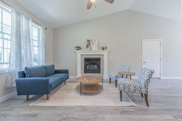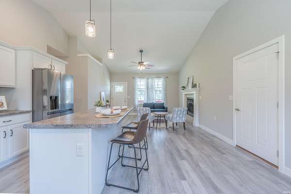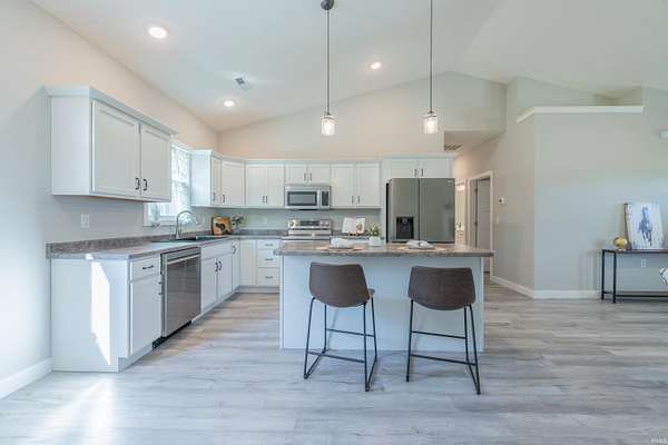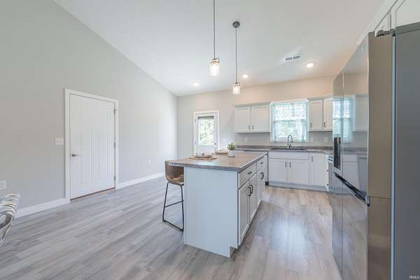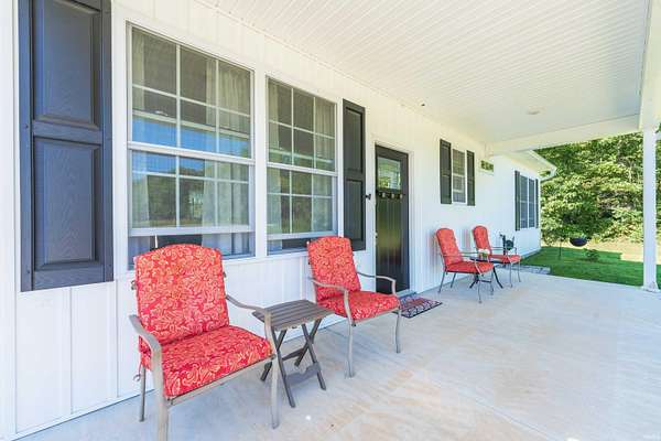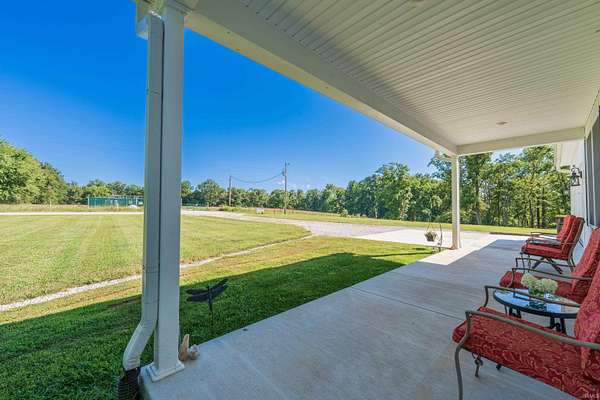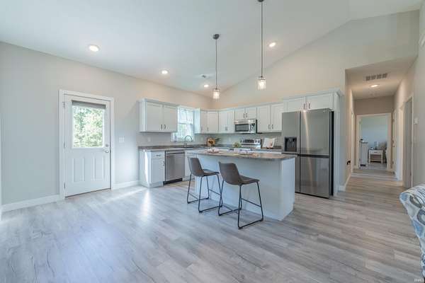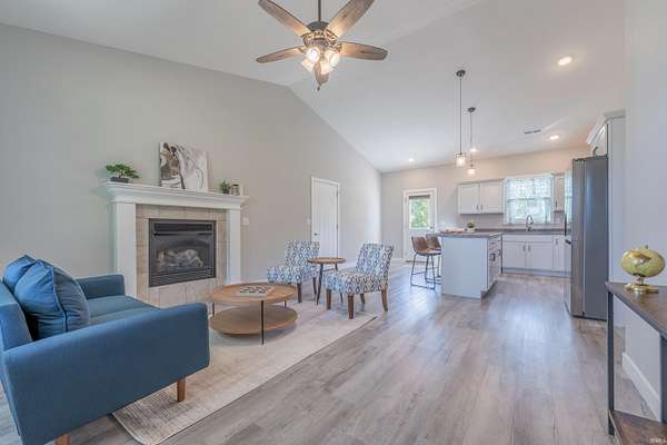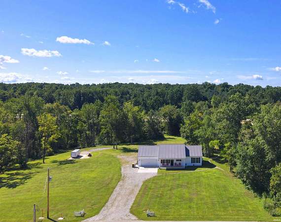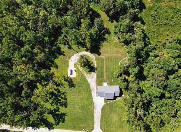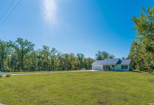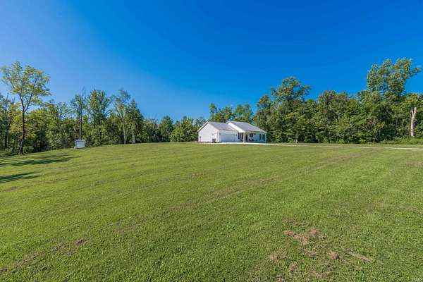 Like new construction, built in 2022, this farmhouse-style 3 bedroom/2 full bath ranch sits on 3.25 acres, bordered by mature forest for added privacy. Inside, the open floor plan, vaulted ceiling in main living area, and thoughtful finishes create a warm and timeless feel. Notable features include: a durable metal roof; luxury vinyl plank flooring and 9' ceilings throughout; a gas fireplace; a spacious center island with seating for four; and stainless steel appliance package. Outdoors, two concrete slabs measuring 23' x 29' and 15' x 19 are already in place, providing excellent foundations for future outbuildings. Located just outside Bloomington, this property offers the perfect balance of rural tranquility and convenient access to town. Fiber internet available.