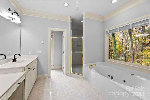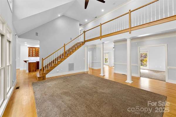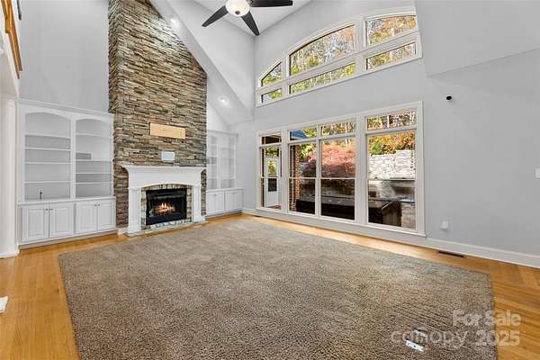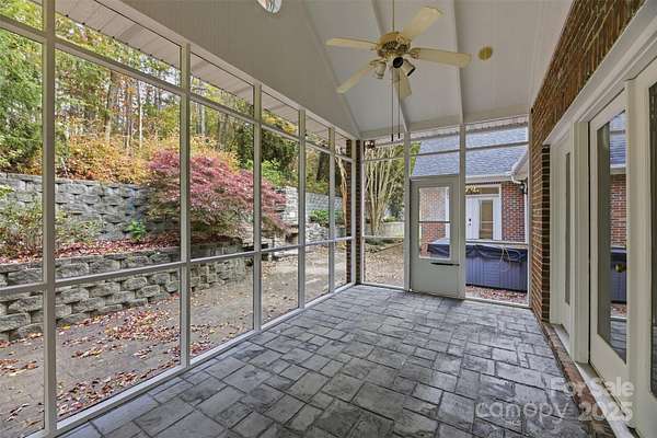 Gorgeous Home on 2.25 Acres in the Heart of Concord's Partridge Bluff! Beautifully maintained home in a mature, established community just minutes from I-85 and Atrium Health Cabarrus Hospital. Privately situated on 2.25 wooded acres, this property offers a four-car garage, custom landscape lighting, irrigation system, screened porch off the primary bedroom, and a patio with hot tub and outdoor wood-burning fireplace-perfect for relaxing or entertaining. The elegant entryway leads to a gourmet kitchen featuring an apron sink, downdraft gas cooktop, walk-in pantry, and Medallion cabinetry. Enjoy both formal and casual dining areas and a living room with built-in cabinetry on each side of fireplace and floor-to-ceiling windows overlooking the serene backyard. The mudroom off the garage includes a utility sink for convenience. The main-level primary suite features a spacious walk-in closet and a luxurious en-suite bath with walk-in shower and garden tub. Two additional bedrooms and a full bath complete the main level. Upstairs features a large bonus - room and game room (pool table conveys), plus two additional bedrooms and two full baths. Recent updates include a newer roof, HVAC, gutters, and gutter guards. This stunning home combines privacy, space, and convenience-a truly rare find in Partridge Bluff!