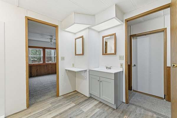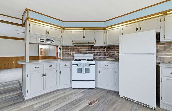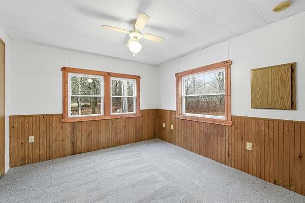 Tucked away on 2 acres, this renovated 2-bedroom, 1-bath single-wide offers comfortable living in a quiet, rural setting. Inside you'll find new flooring throughout and a fresh, updated feel. The generous covered porch extends the living space outdoors and provides a great spot to enjoy the surrounding property and views. With open yard space and a simple, low-maintenance layout, this property offers privacy and room to spread out while remaining easy to care for. Its manageable size and ideal setting make it well suited as a primary residence, weekend retreat, or a place to stay while enjoying the surrounding area.