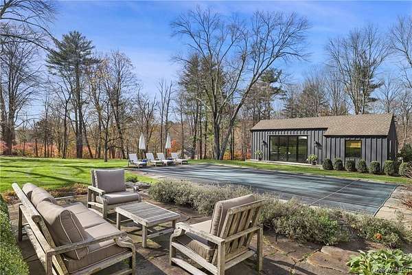 THE PERFECT COUNTRY RENTAL - Spend the month of August in Bedford! Absolutely turn-key Country House with spacious, sun-filled rooms. Beautifully appointed interior perfect for entertaining. Stunning Living Room with fireplace and three sets of French doors to arbor-covered terrace. Formal Dining Room with fireplace and door to Screened Porch. Chef's Kitchen with white cabinetry, soapstone counters and Thermador stainless appliances. Open and airy Family Room with fireplace and walls of windows to capture the view. Private Primary Suite with Bath. Three additional Bedrooms. Choice of Offices for working remotely. Long drive to over four estate area acres with level lawns, spectacular plantings and raised bed gardens. Swimming Pool with fabulous Two-Bedroom Pool House. Available for August. Prospective tenant must fill out an NTN on line.