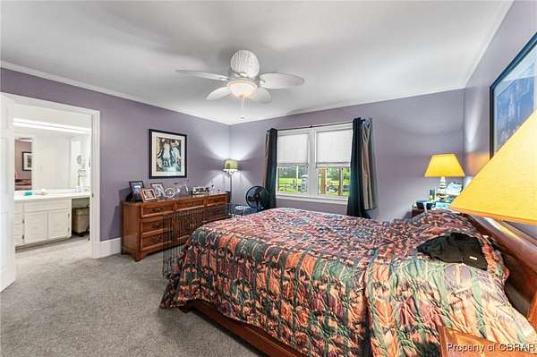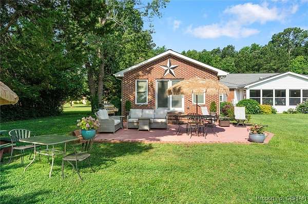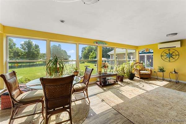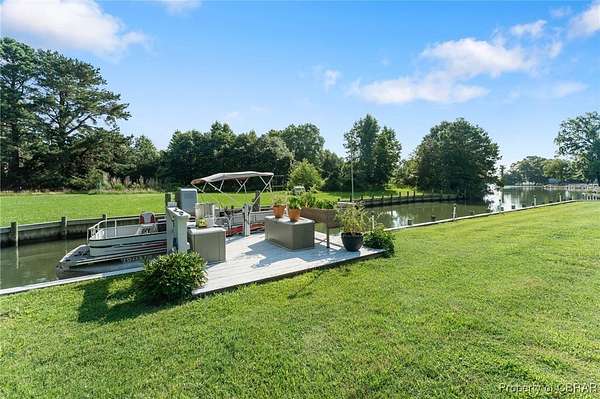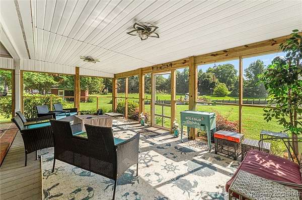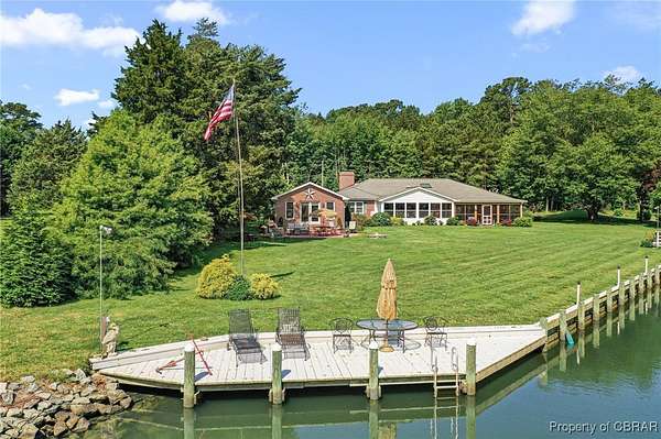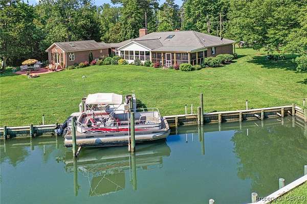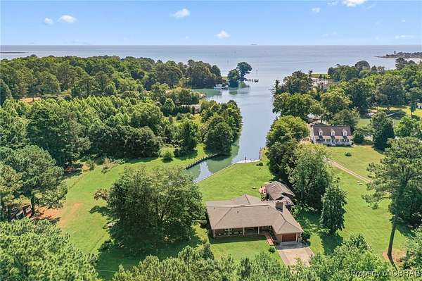 Discover serene luxury in this beautifully updated brick ranch-style home, nestled on 4.4 acres with approximately 450 feet of pristine shoreline along a protected, dredged harbor fortified by a bulkhead. Boasting breathtaking east-facing views of the bay and unforgettable sunrises, this property offers the perfect blend of modern comfort and waterfront charm. The home features 3 spacious bedrooms and 3.5 baths, including a recently added owners' suite with a lavish ensuite bathroom and expansive walk-in closet that opens directly to a private waterfront patio. Entertain or relax in the large sunroom, seamlessly connected to an equally impressive waterside screened porch, perfect for enjoying the coastal breeze. Two waterside patios and a convenient boat lift enhance the waterfront lifestyle. Additional highlights include an attached garage, a 14kW backup generator, and versatile outbuildings, including a barn, stables, and extra storage shed. The fenced meadows, previously home to livestock, offer endless possibilities for equestrian or agricultural pursuits. This exceptional property combines timeless elegance with practical amenities, making it a rare find for discerning buyers seeking a waterfront retreat.