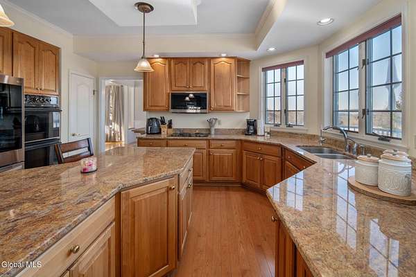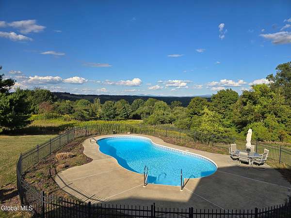 Multiple offers received highest and best offers due by 2/2 at 6pm Experience the breathtaking views of the Tomhannock Reservoir and the scenic hills of New York and Vermont from this inviting 4-bedroom, 2.5-bathroom single-family home within The Meadows community. Set on 2.43 Acres with newly landscaped grounds, completed on (5/1/2025). Cathedral ceilings and hardwood floors enhance the natural beauty of this property. It is easy to appreciate the comfort of a high efficiency geothermal heating system (installed 8/1/2024) as you enter the spacious eat-in kitchen that flows seamlessly into the great room, complete with a wood burning fireplace and access to the large deck that overlooks a fenced-in pool with a newly installed safety cover (9/2/2024). This home is perfect for entertaining and basking in the beauty that Rensselaer County has to offer!