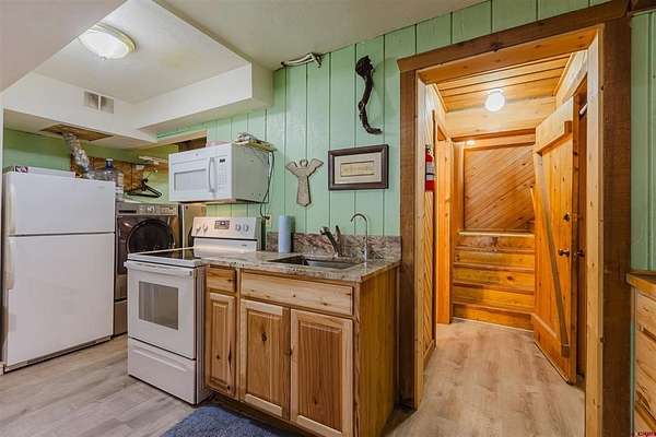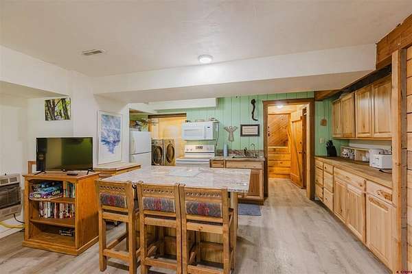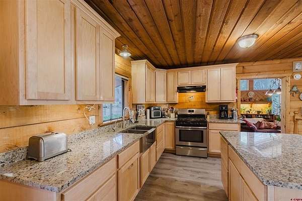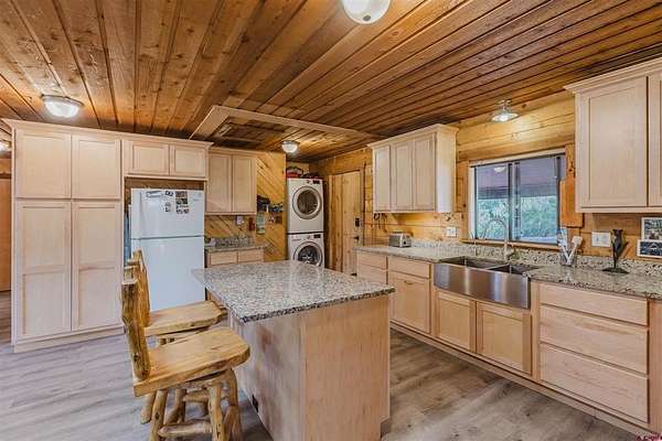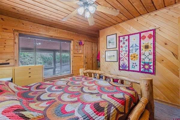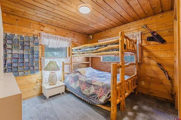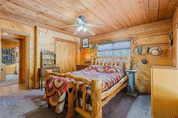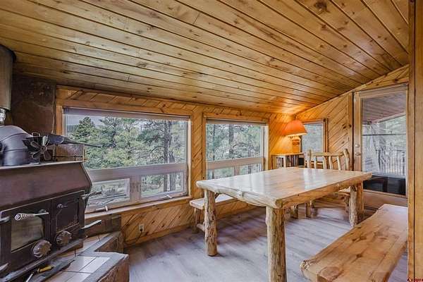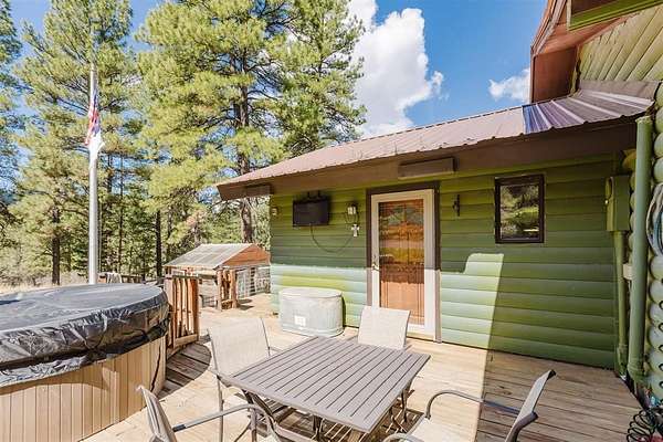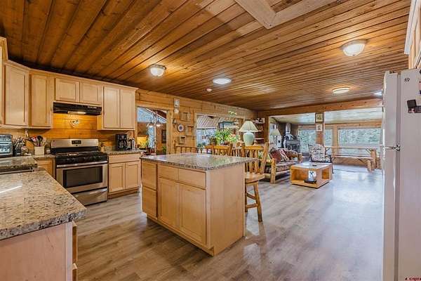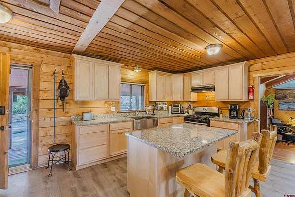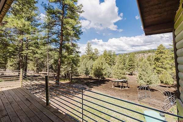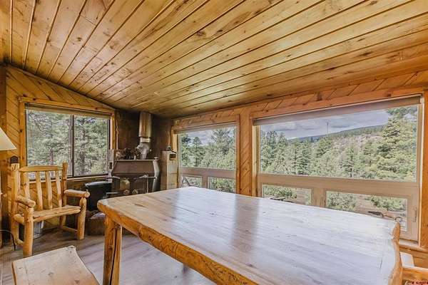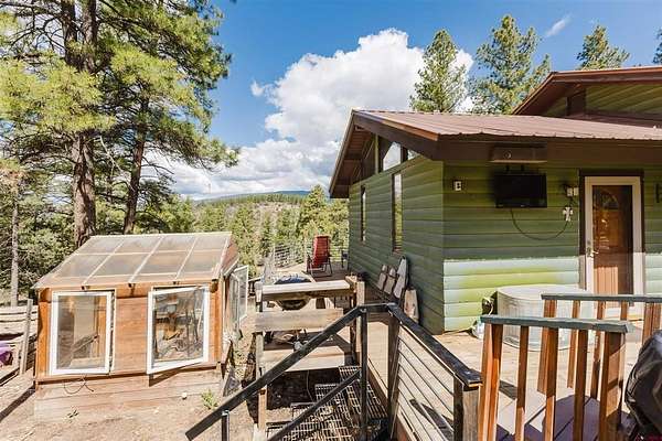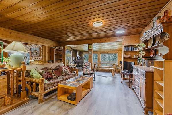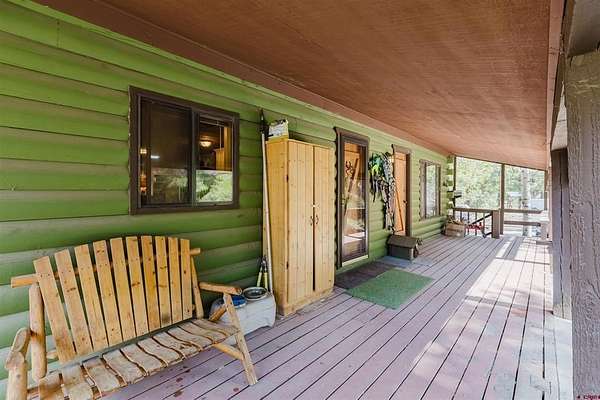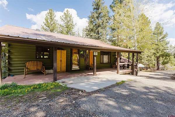 Deborah Kerns, Team Pagosa Realty Group, C: 970-749-0986, deborah@teampagosa.com, www.crenmls.com: Paved driveway at this Custom 3 bedroom 3 bath log sided home with large covered deck with Hot Tub and BBQ /entertaining area. New Metal roof. As you enter the home you will see the open floor plan great room, family room, dining & kitchen with laminate wood flooring, vaulted ceilings, wood burning stove, wall of windows, remodeled kitchen with lots of cabinets, new granite counters, island, gas range, refrigerator, new water heater, laundry area with washer & dryer, 2 full baths on main level. 840 sq foot basement used as an ADU, which has its own kitchen with cabinets & counter, island, refrigerator, range, full sized washer/dryer, full bath, office, bedroom w/closet and family room with ground level entrance from the outside as well as upstairs (which can be locked off). Carport will accommodate 2 vehicles plus a separate single carport great for extra vehicle, boat etc.. most of the property is fenced for your livestock, 2 stock tanks, also the property features a large storage shed, chicken coop, RV parking on paved driveway, 2 cisterns totalling 1900 gallons. Free standing greenhouse. Included is also the water tank. This property has a NEW survey consisting of the 7 acres.