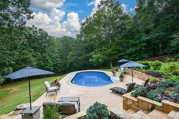 6+ Acres with mountain views, a pool framed by gorgeous flagstone and beautiful landscaping. 2 Acres fully fenced. Remaining acreage leads to Sharp Mountain Parkway -perfect for another home on 3 acres, enclosed RV or boat storage or classic car garage. *HAPPY NEW YEAR! - 2026 HOA DUES PAID IN FULL, BUYER WILL NOT NEED TO REIMBURSE SELLER AT CLOSING* Discover this beautifully crafted custom home nestled on a corner lot in the prestigious Preserve at Sharp Mountain. Your own private oasis with breathtaking views of Tally Mountain. Inside, you'll be welcomed by a warm and inviting family room featuring a floor-to-ceiling real stacked stone fireplace, flanked by built-in bookcases. French doors open to an expansive screened-in rear porch, the perfect place to unwind and enjoy serene mountain views. The open-concept kitchen boasts granite countertops, stainless steel appliances, a breakfast bar, and seamless flow into the family room-ideal for entertaining. A cozy keeping room just off the kitchen overlooks this tranquil property; creating a peaceful spot to relax any time of day. The main-level master suite includes a spacious sitting area and a luxurious bath with a soaking tub framed by corner windows, offering a spa-like retreat with scenic views. The finished terrace level provides even more living space with a second custom kitchen, family room and a private bedroom with full bath-ideal for multi-generational living or entertaining guests. Step outside to a covered full-length patio with built-in gas grill and cooking area just steps from the pool. Located just inside the front gate of The Preserve at Sharp Mountain, this home offers privacy, views, and convenience-just 10 minutes from Highway 575 for an easy commute to Atlanta.