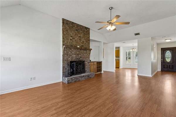 Rare opportunity, acreage & four bedroom home under $300,000!!! This cute ranch home in Wildwood Estates is nestled on 3.27 acres within a welcoming HOA community. Enjoy the freedom to have farm animals, add a detached garage or barn all within the guidelines of the HOA. You can have the tranquility of spacious outdoor living while being conveniently located near Kingsland, St. Marys, and Brunswick, with I-95 just a short 12 mile drive. Home features a split floor plan, separate dining room, 2 car garage with storage closets, brick wood burning fireplace, 4 Bedroom, 2 Bath & a NEW ROOF. Embrace the potential of this property & make it your own! Home is being sold "AS IS". Do you need more than 3 acres? Seller owns the cleared 3.21 acres adjacent to this property that is available for sale. This home would make great use of the FHA203k Loan or the VA renovation loan; finance your renovations with the option to make your own design selections & pick your contractor.