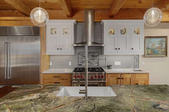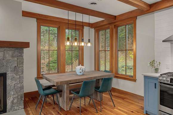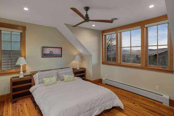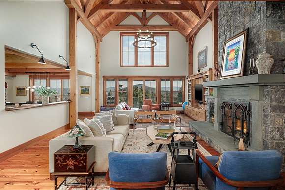 This is the ultimate multi-family retreat for those looking to experience the Mad River Valley with luxury, comfort, and convenience! Set inside the exclusive Lincoln Ridge, homeowners in this complex have access to a private hiking trail network and direct, ski-on/ski-off access to Sugarbush Mountain via a private, manned snow cat. 77 Timber Ridge is unlike any other home you've seen. Custom built by the current owner, the property is designed to allow families and friends to vacation together, giving all parties designated homes while also providing shared social spaces for those times when everyone chooses to be together. In other words, this is three houses in one! The main house in the center has a grand living room with a majestic stone hearth and views of the surrounding mountains. The adjoining oversized kitchen ensures that hosts can entertain while preparing food - or invite everyone to join you in firing up the pizza oven! The primary bedroom with attached full bath is on the first floor, providing indiscriminate accessibility. That being said, the elevator likewise provides an easier way to move between levels! Take the elevator upstairs to find another two bedrooms with bathrooms and designated office spaces. Both the left wing and the right wing of this compound are full houses unto themselves, with their own kitchens, living rooms with woodfired hearths, and two bedrooms with attached baths apiece. All three spaces have combined access to the basement level.