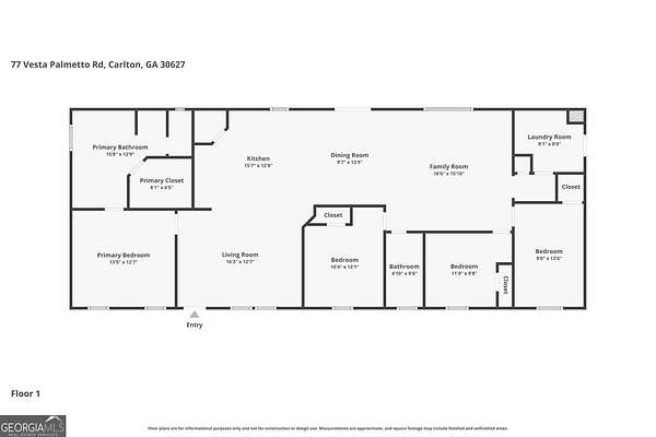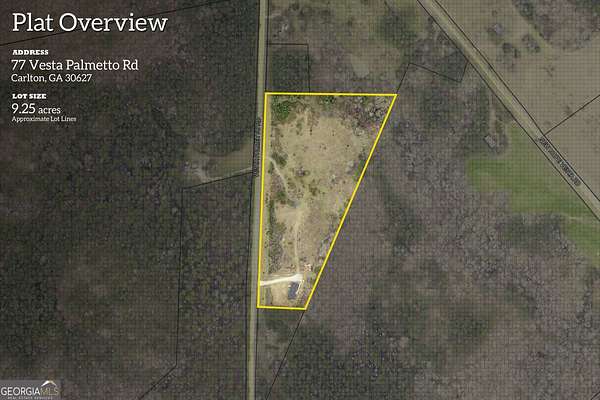 This 9.25-acre property is located at 77 Vesta Palmetto Rd in Carlton, GA 30627. The property is available for sale for $350,000. It has a 1,904 sq ft 4 bedroom, 2 bath house built in 2021.