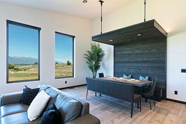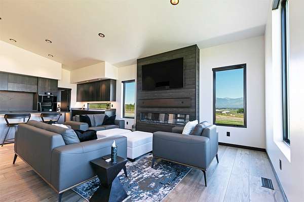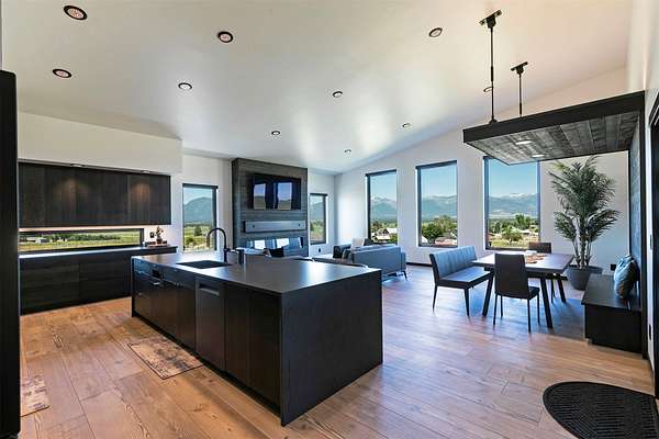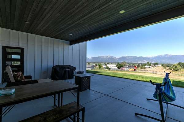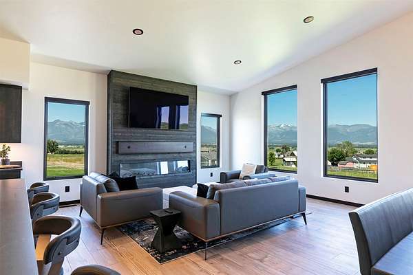 Eastside Luxury Home with Stunning Bitterroot Valley Views Discover refined living in this beautifully designed, nearly new single-level home offering 3,040 square feet of modern elegance. Thoughtfully crafted with clean architectural lines and expansive windows, the open-concept layout fills the space with natural light and captures breathtaking views of the surrounding mountains. Exceptional finishes are showcased throughout, including over 2,000 square feet of premium Italian tile. The spacious great room serves as the heart of the home, featuring soaring ceilings, a sleek linear electric fireplace, and a welcoming dining area-perfect for both entertaining and everyday living. Step outside to the covered back porch and enjoy peaceful, year-round views of the Bitterroot Valley. The chef's kitchen is designed to impress, complete with high-end appliances, a large quartz waterfall island, abundant cabinetry, and a convenient butler's pantry for added functionality. Unwind in the luxurious primary suite, which includes a private linear fireplace and a spa-like bathroom with heated floors, a digital rain shower, and a custom walk-in closet with built-in shelving. Two additional bedrooms, each with their own bathrooms, offer comfort and privacy for guests or family members. A dedicated office space, tucked behind a stylish metal barn door, features custom built-ins and accommodates two workstations-ideal for remote work or creative pursuits. Additional highlights include a climate-controlled three-car garage and striking curb appeal with white board-and-batten siding complemented by bold black accents. This exceptional home combines style, comfort, and functionality-schedule your private showing today to experience it for yourself. Full amenities lists available under documents.