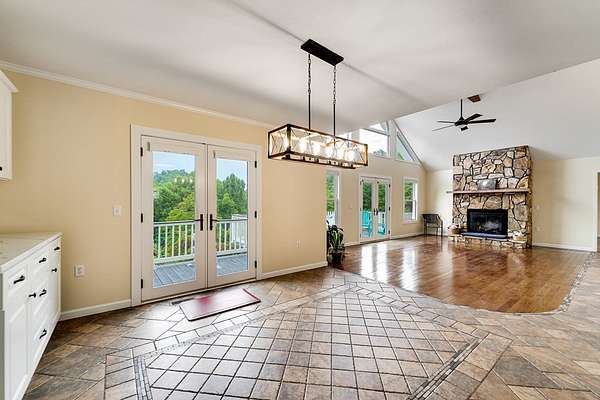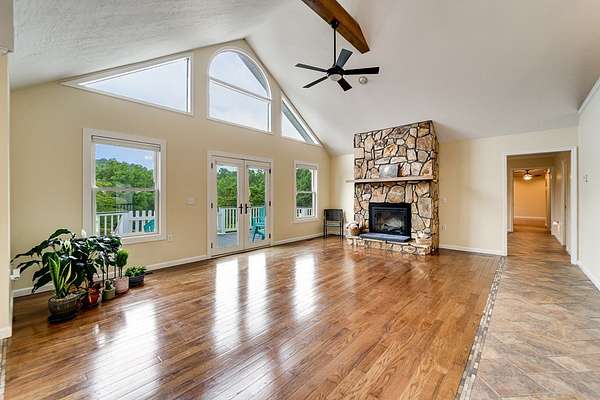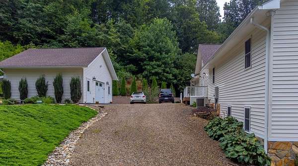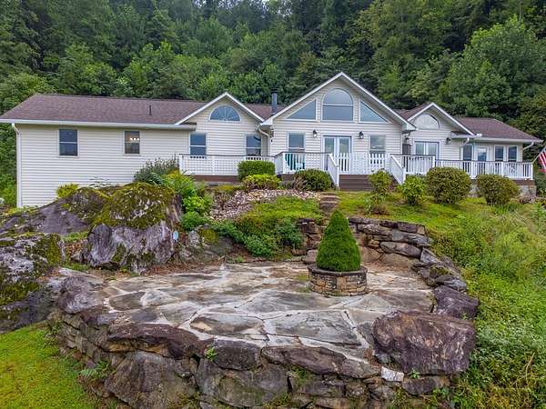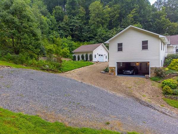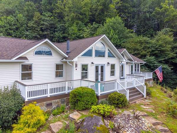 Your next peaceful retreat awaits! This property offers privacy and versatility, nestled on 4+ acres of beautifully landscaped grounds and stunning mountain views! Featuring 3 bedrooms, 3.5 bathrooms, with a primary bedroom ensuite on the main level and a large walk-in closet. The open-concept main floor boasts hardwood and tile flooring, vaulted ceilings, and an electric fireplace. Additional flex spaces that can be utilized to fit your needs. A standout feature, a lower-level in-law suite, ideal for guests seeking their own space. A large bonus room downstairs enhances the home's versatility. Storage options abound with a large interior storage room, an attached two-car garage, and a detached one-car garage offering two bonus spaces, plus a carport shed. Enjoy stunning views from the front deck or relax in the 3-season sunroom. This property is equipped with thoughtful features like a Generac whole-house generator, water filtration system, a whole-house surge protector, and a custom-built A-frame dog house, set on a spacious lot, perfect for pet lovers. Don't miss this unique opportunity to own a piece of tranquility with an interior layout primed for endless possibilities!