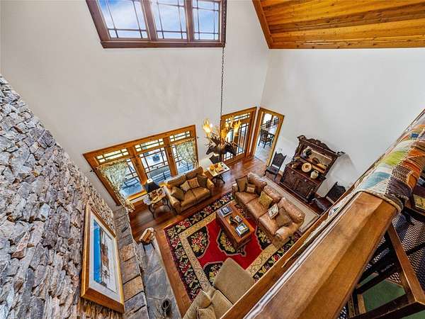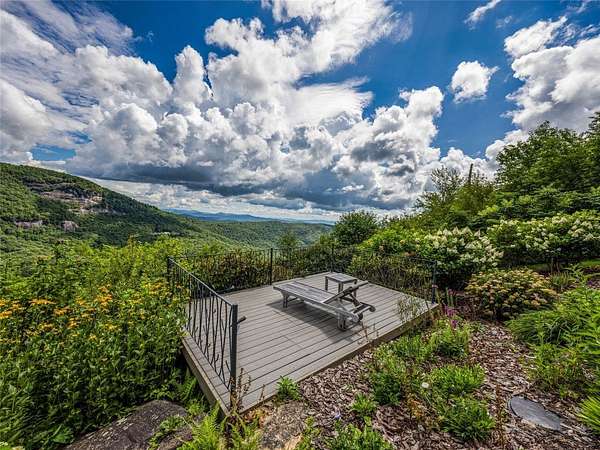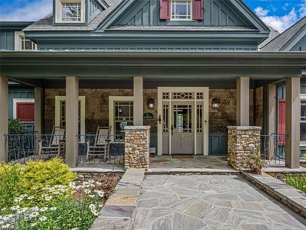 Best Mountain Views in Lake Toxaway! Experience refined mountain living on three outstanding Meadow Ridge lots spanning over 7 private acres with panoramic views of Cold Mountain, Panthertail Mountain, and the Blue Ridge Parkway. This exceptional 5-bed, 7-bath estate blends luxury and comfort with vaulted ceilings, custom woodwork, and three impressive native stone fireplaces. The main house features a spacious eat-in kitchen with granite countertops and limestone floors, antique heart of pine floors, along with a fitness room and multiple living spaces designed for relaxation and entertaining, all with stunning views. Outdoor living shines with two entertainment terraces, an open area for seating around a native stone fireplace with sweeping mountain views, a covered passage between main home and garage/guest quarters, and professionally landscaped grounds complete with a stream and waterfall. The separate light-filled guest quarters above the garage includes a full bath and kitchenette, and large windows with breathtaking views-perfect for hosting visitors. Modern conveniences include reliable Starlink internet that is connected to the whole-home generator, ensuring comfort and connectivity in every season. Every detail has been carefully considered to create a peaceful, elegant retreat. Offered fully furnished with some exceptions, this home is the pinnacle of fine mountain living.