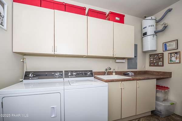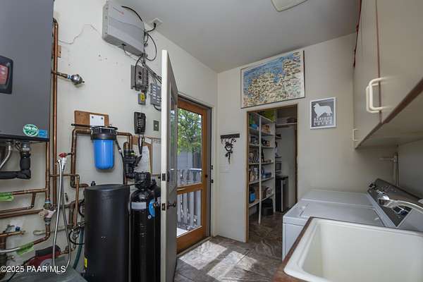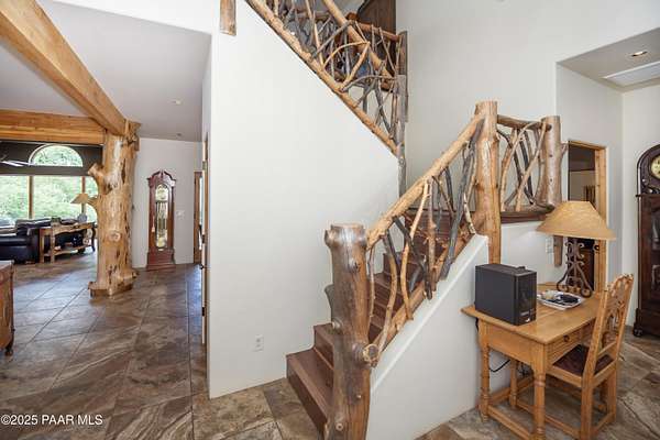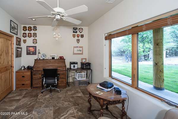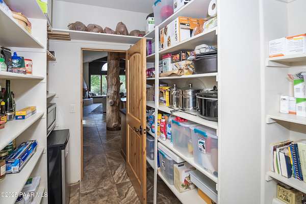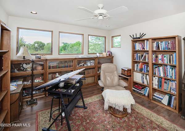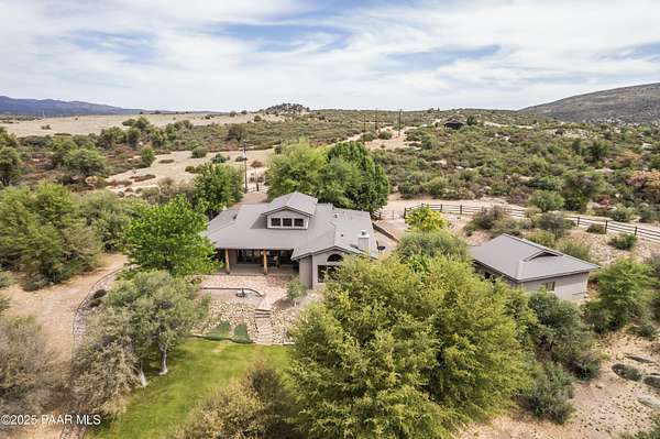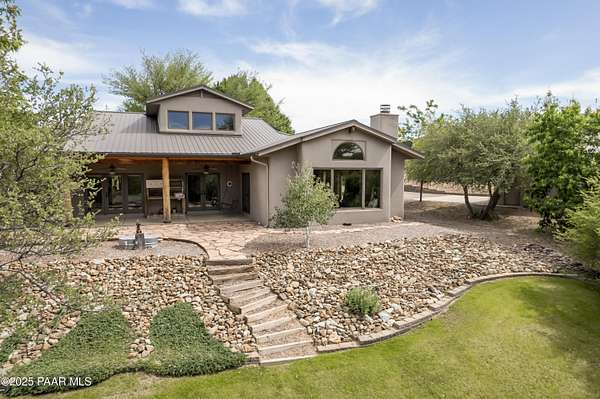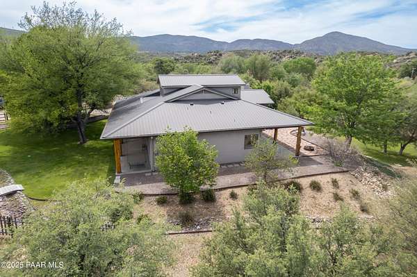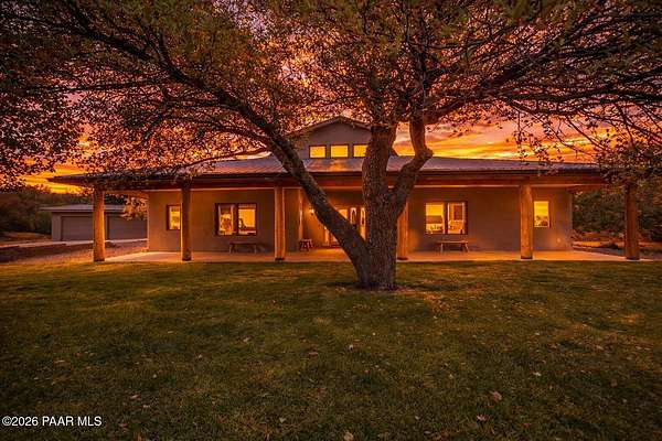 Your search for a haven of tranquility ends here. This 3 bedroom, 2 bath home is the perfect place to beat the heat and enjoy 4 mild seasons. Custom designed and built to maximize comfort, structural integrity, and longevity. From the 12-inch thick, fireproof RASTRA construction to the metal roofing and meticulous landscaping, you will find peace and ease of maintenance for many years to come. With a walk-in pantry in the kitchen, large dedicated laundry room, and spacious master closet, you will never lack for space and organizational capacity. The in-floor heat operates via the on-demand gas water heater, making those winter months comfortable. The custom staircase off the front entry brings you to a classy loft area with gorgeous bookshelves - perfect for an office, library, or other flex space. For the chef of the home, you will love the Sub-Zero refrigerator and Wolf professional gas stovetop with electric oven. The large island makes food prep a dream with a built-in prep sink, and the open concept to the living room keeps you involved in the activities of the home. The large 2-car garage is perfect for parking, projects, and storage! Outside are 2 lush grassy lawns, established shade trees, and lovely but functional landscaping. Behind the house, step out of your fenced yard and across a small seasonal wash to a beautiful meadow surrounded by cottonwoods. This could be the perfect place for your larger 4-legged friends, or left as is! All this and more in a tidy 2-acre package just a short distance from Prescott.