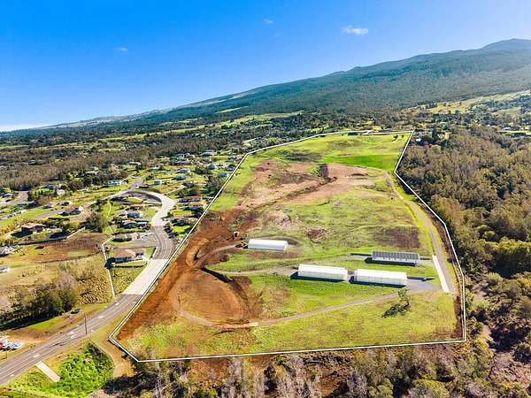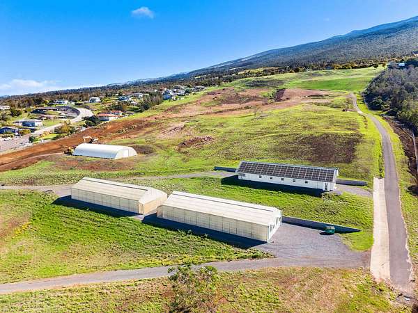 Exceptional 58-acre agricultural estate comprised of eight separate TMKs, featuring a unique combination of high-quality improvements, established income, and long-term flexibility. The property includes three substantial ag buildings, two fully automated commercial greenhouses, and extensive infrastructure throughout. Improvements include a 1,300 sq ft Ag Office/Studio (2023) with slab-on-grade construction, 2x6 framing, Marvin windows, hardwood floors, split-pitch roof, R-19/R-30 insulation, Lutron automated lighting and shades, and Sonos audio. A 4,200 sq ft Ag Shop/Storage/Office offers 12’ walls, a 12/12 standing-seam metal roof, loft with hardwood flooring, and a Solark/Discovery off-grid PV system with 74kW storage. A 2,400 sq ft Ag Warehouse with 12’ walls and standing-seam metal roof is also supported by the same off-grid solar system. Two 3,600 sq ft Agri-Tech Solar-Lite greenhouses, both fully automated and have supported a proven agricultural operation. Existing leases generate substantial income. Significant site work has been completed, including approximately 4,000 linear feet of 12-foot-wide asphalt drive providing secondary ingress/egress, an additional 800 linear feet of asphalt and concrete, four 12’ x 100’ concrete swales, and approximately 8,000 linear feet of perimeter game fencing. Roughly 40 acres have been cleared of old-growth wattle, with mulching and chipping currently underway. This is a solid opportunity to acquire a large-scale, income-producing agricultural property with new infrastructure, multiple revenue streams, and long-term value.