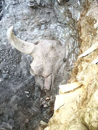 Also located on the ranch is a buffalo jump--an archaeological site where bison were driven over cliffs in large hunts. These events were coordinated with precision and cooperation, allowing tribes to harvest meat, hides, and bones to sustain their communities through the seasons. Today, stone drive lines and artifact-rich soils offer insight into these communal hunts, which were essential to life on the Northern Plains for centuries.