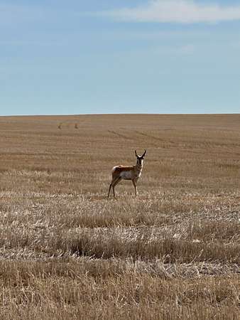 Big Game & Upland Hunting: Whitetail and mule deer are consistent in the river bottoms and surrounding fields, with good age class and solid opportunity each season. The ranch also lies in an area known for producing trophy pronghorn antelope, which roam the open prairie and hayfields. The diverse terrain--cottonwood bottoms, cropland, native grasses, and brushy draws--also supports upland birds, wild turkeys, and a variety of migratory ducks and geese. Ample water, food, and cover hold game throughout the year and provide quality setups for both big game and bird hunting.