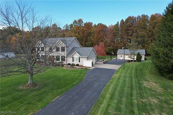 Canfield Township, Canfield Schools. Fantastic neighborhood, EXCEPTIONAL MOVE IN READY Home on 1.75 acres with beautiful interior updates and Private Outdoor Retreat. This beautiful lot offers ample space for entertaining, privacy, and enjoying nature, beautifully designed landscaping surrounds the property, with walkways that encircle the home. The backyard is a true oasis, featuring two levels of exterior patios, a basketball court, firepit, above ground pool, 30x40 detached insulated 6 car garage along with a 20x40 concrete slab out back for a boat, motorhome, storage area, etc., with water, electric and gas heat, ideal for outdoor work, relaxation & gatherings. Inside, so many updates... Open floor plan features 1st floor laundry that welcomes you from the attached garage along with a half bath just across the way. Entering into the updated home, open eat-in kitchen with all stainless appliances and granite counter tops plus large island Kitchen, a sliding glass door that opens to the newly stained deck with awning. A family room featuring woodburning fireplace with a gas start. The home has a beautiful dining room with trayed ceiling and natural light, a spacious foyer, and a living room all with gorgeous Baird brothers hardwood flooring! The second floor has master suite with a large walk-in closet, Brand New master bath with soaking tub and ceramic standing shower. There are 3 additional spacious bedrooms and another Brand-New full bath with tub on the second floor. The upstairs features both new bathrooms, new carpet, and the whole home has been freshly painted and professionally cleaned. The basement was recently beautifully finished with natural wood, covered beams, built in bookshelves and built in closet storage. Updates: Wood Floors (2019), Roof, Windows & Doors (2021), New Pressure Tank, New double tank water softer system (2024) AIO Ozone generator, New HWT, New garage gas heater for the attached garage. NEW SEPTIC scheduled to be installed 3/23.