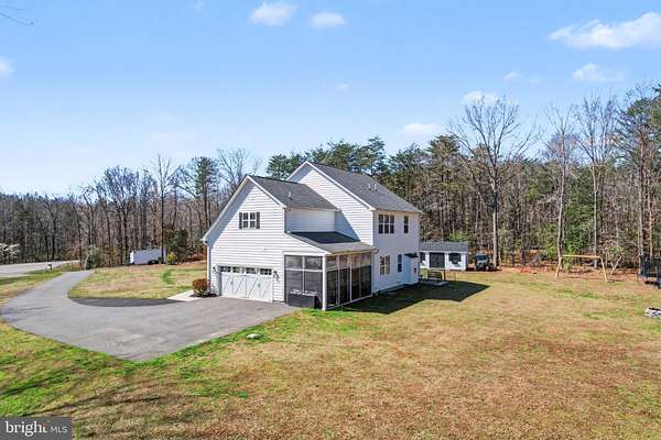 Welcome to 7701 Riparian Court-an exceptional Craftsman-style home built in 2020 and perfectly situated at the end of a cul-de-sac on 10 private acres in Fredericksburg. Thoughtfully designed and extensively upgraded, this private estate offers a rare combination of modern systems, flexible living space, and outdoor enjoyment. A welcoming slate-front porch introduces the home's inviting interior, where hardwood flooring, detailed trim work, and abundant natural light set the tone. The main level features a dedicated office or flex space behind French doors, complete with shadowboxing and chair rail accents. The family room is both comfortable and refined, highlighted by a gas fireplace, upgraded lighting, and a coffered-style ceiling detail. The kitchen is a standout, featuring high-end GE Cafe appliances, quartz countertops, a custom backsplash, and a custom wood vent hood. The adjoining dining area provides a bright and functional space for everyday living and entertaining. A mudroom and half bath add convenience, while the screened porch has been enhanced with a 3-season breeze system-offering vinyl windows and screens for extended usability throughout the year. Upstairs, you'll find four bedrooms with new LVP flooring throughout, including a spacious primary suite with dual walk-in closets and an en-suite bath featuring tile flooring, a glass-enclosed walk-in shower with dual shower heads, double vanities, and decorative trim details. Additional bedrooms include ceiling fans and ample closet space, and the upper-level laundry room adds everyday convenience. The fully finished lower level provides exceptional flexibility, offering a complete living area with a full bath, making it ideal for extended living arrangements, guests, or multi-purpose use. A second laundry area and additional storage space are also located on this level. Brand new LVP flooring continues throughout the basement. This home is equipped with numerous system upgrades, including a high-end Aprilaire air purification system, a commercial-grade Mermaid water filtration system, and a 600-foot deep well. Starlink high-speed internet is already installed, supporting modern connectivity needs. Additional features include gas service for the water heater, stove, fireplace, and backup heat, a 50-amp exterior plug, LeafGuard gutter system, and a fully insulated two-car garage. Outside, approximately 2+ acres are cleared, with additional wooded acreage featuring established ATV trails and a firepit area for outdoor enjoyment. The home is further enhanced with permanent Govee exterior lighting, allowing for customizable, app-controlled lighting to elevate curb appeal and seasonal decor year-round. An extension off the driveway provides additional parking or access flexibility. Despite its private setting, the property is conveniently located near major commuter routes including I-95, Route 3, and VRE options, as well as shopping, dining, and everyday amenities-offering both accessibility and space to spread out. Delivering modern comfort, thoughtful upgrades, and versatile living, all in a peaceful Fredericksburg setting - this is the one!