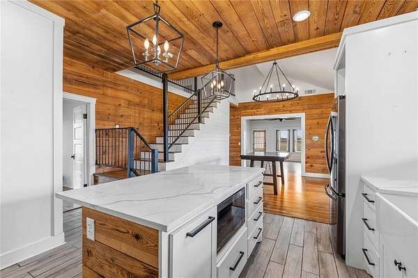 - Chandelier, Decorative Lighting, Double Vanity, Eat-In Kitchen, High Speed Internet Available, Kitchen Island, Natural Woodwork, Open Floorplan, Pantry, Vaulted Ceiling(s)