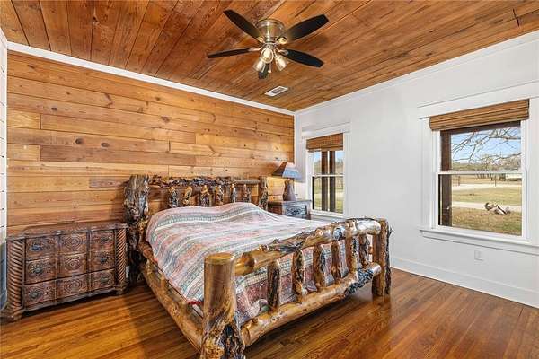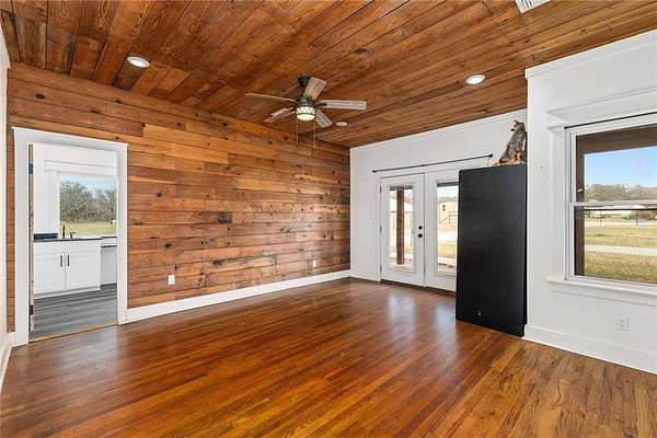 Beautifully updated farmhouse situated on 30 fenced acres, offering the perfect blend of modern comfort and country charm. This 3-bedroom, 3-bath home features a welcoming wrap-around porch and a light-filled interior with shiplap accents, neutral paint tones, and abundant natural sunlight throughout.