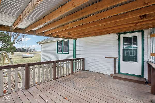 Step into a unique opportunity to own acreage with outbuildings just outside of Pendleton! This charming single-story home, originally built in 1899, offers a blend of historic character and everyday comfort with plenty of space to spread out-both inside and out. With 1,506 square feet, the home features three inviting bedrooms filled with natural light, along with a full bathroom designed for practical living. Updated vinyl plank flooring throughout the home. The rear laundry area opens the door for future possibilities-whether you envision adding a second bathroom or creating a private primary suite. At the heart of the home, the kitchen is both functional and welcoming, complete with classic shaker cabinets, ample counter space, and a cozy eat-in area. Outside, you'll find over 3 acres of open space, offering a peaceful, rural setting with room to roam. A charming front porch creates a warm first impression, while the spacious back deck is ideal for relaxing or entertaining. The property also includes a versatile outbuildings and sheds, providing excellent storage or workspace options. If you're looking for space, character, and potential, this property delivers a truly special place to call home.