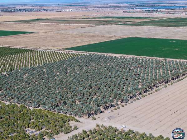 Fully improved and operational Citrus/Date grove located near Niland, CA in a area with winter temperatures traditionally higher than other competing areas reducing the chance of frost. Orchard Description: 300 Acres mature citrus trees including Lisbon & Eureka Lemons, Seedless Lemons and Minneola's, 29 Acres recently planted Sweet Limes, all citrus planted on Macrophylla Rootstock, 28 Acres Medjool Dates, 72 Acres open ground suitable for produce crops (gravity fed via concrete canal). Trees are spaced at 75 trees/acre. Yield records available upon request. Currently enrolled in the farm conservation program. Large metal shop with additional shade structures. 2 redundant pump & reservoir systems that serve the entire property which can work independently and/or together. APN: 021-340-008-000, 021-350-001-000, 021-360-001-000. Any owned mineral interests will transfer. Property is zoned A2-RE (the RE denotes that the property is located in a specific plan area designated for renewable energy projects).
